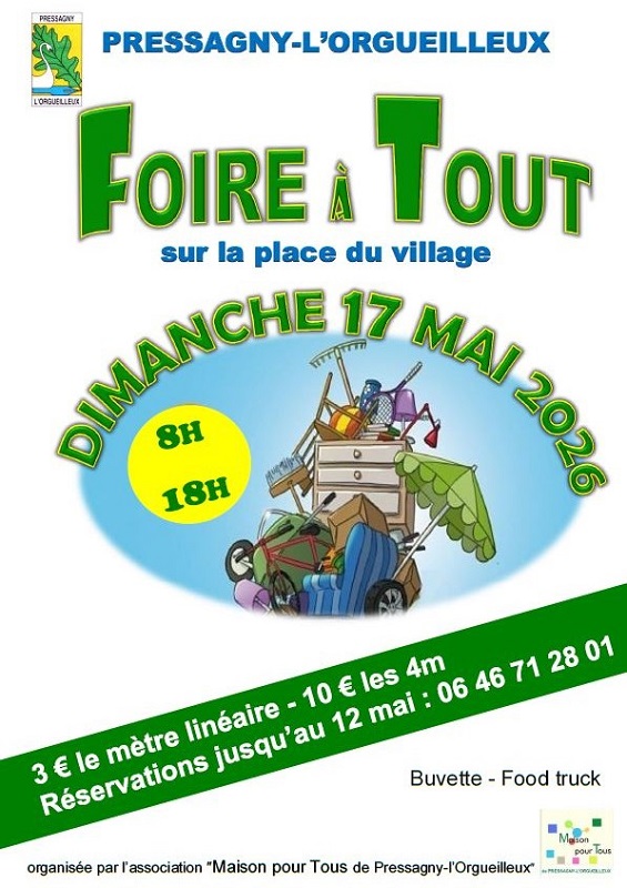 La Foire à Tout, organisée par la Maison Pour Tous, sur la place du village est de retour le dimanche 17 mai !